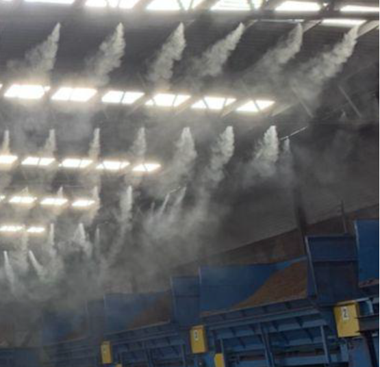 DUZTECH HS SYSTEM are a fixed system for reduction of dust particles. The flow rate is low and thereby the moisture content is kept low. Low flow rate is of great importance if the availability of water is limited.